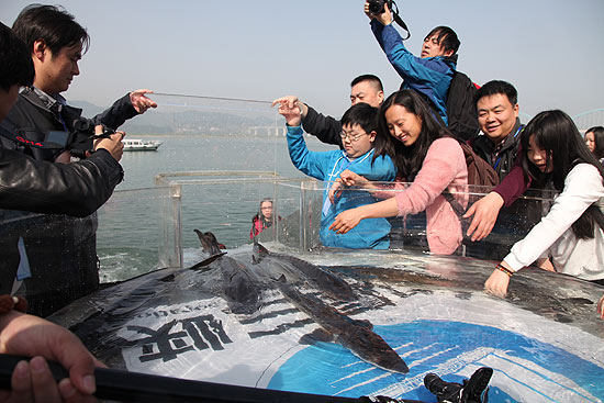 4月12日,湖北宜昌市胭脂园长江珍稀鱼类放流点,中国长江三峡集团公司中华鲟研究所举办2015年长江三峡中华鲟放流活动,3000尾人工繁殖中华鲟放归长江,接受“生死考验”。“国宝”中华鲟野生种群目前正面临着种群数量减少、生态环境变化等问题而难以繁殖。有研究表明,长江水体污染导致中华鲟幼鱼畸形和性别失调,使其自然繁殖难度进一步加大。