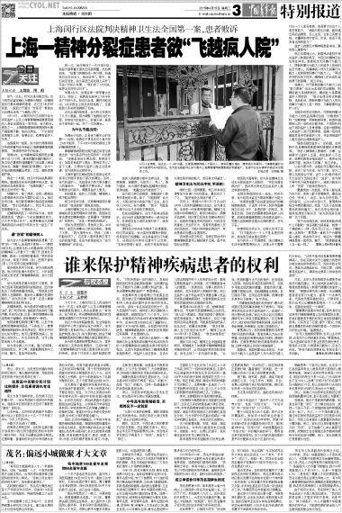 法庭宣判一结束,徐为的代理律师杨卫华就带着判决书来到上海青春精神病康复院,“我得把判决书交给他。”