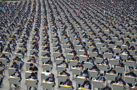 4月11日,陕西省延安市,千余名考生整齐有序地在操场上露天考试。CFP供图