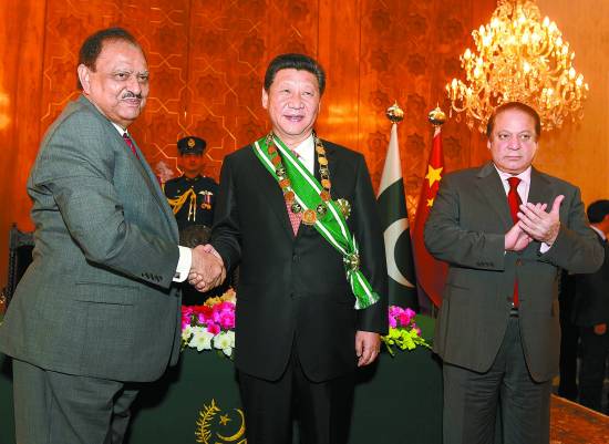习近平指出,中国和巴基斯坦的友谊是肝胆相照的信义之交,休戚与共的患难之交,堪称国与国友好相处的典范。这次访问期间,我同侯赛因总统、谢里夫总理一致同意将中巴关系提升为全天候战略合作伙伴关系,这一定位是中巴全天候友谊和全方位合作的鲜明写照,可谓实至名归。