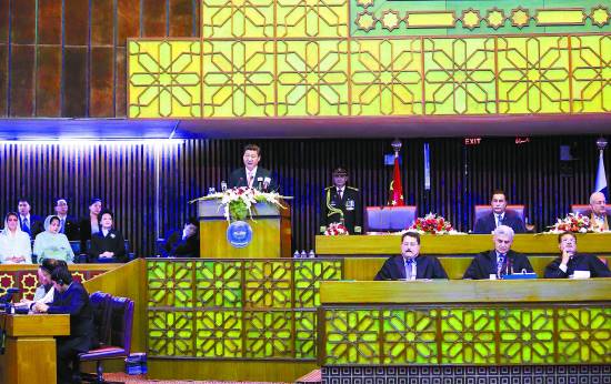 新华社伊斯兰堡4月21日电(记者陈贽 霍小光 张琪)国家主席习近平21日在巴基斯坦议会发表题为《构建中巴命运共同体 开辟合作共赢新征程》的重要演讲,高度评价中国同巴基斯坦的全天候友谊和全方位合作,强调中巴要不断充实两国命运共同体内涵,为打造亚洲命运共同体发挥示范作用。习近平介绍中国和平发展理念,阐述中国对南亚睦邻友好政策,表示中国愿同南亚国家加强合作,实现互利发展、共同繁荣。