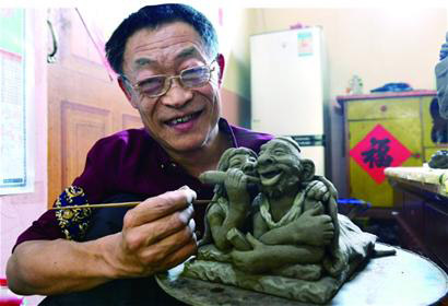 “丑不要紧,要夸张点,有性格的泥塑大家才喜欢。”荆宝海笑着说。