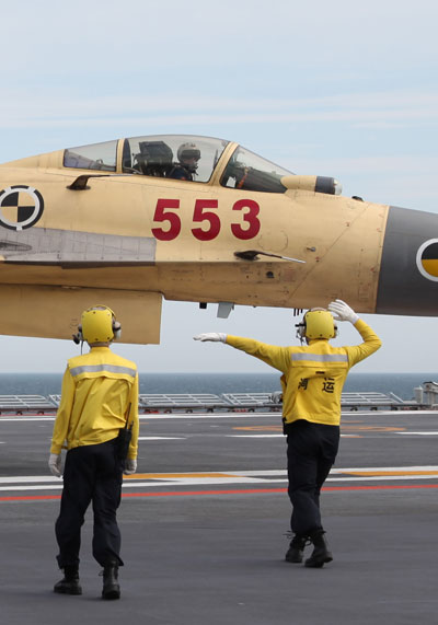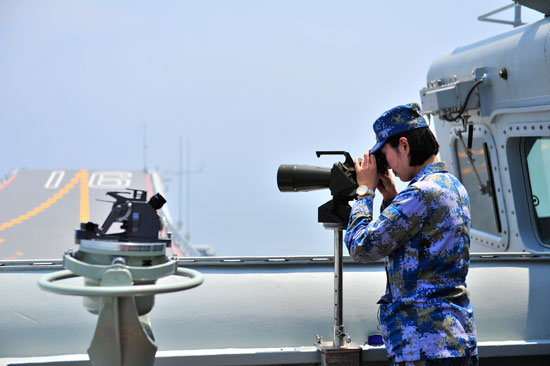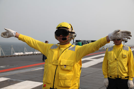 在辽宁舰,类似“航母style”的背影数不胜数,那些身着马甲、戴着七色通信头盔和护目镜的航空保障人员,那些担负导航、操舵、观察瞭望的值更官兵等,出于工作需要,他们经常背对人们的视线。