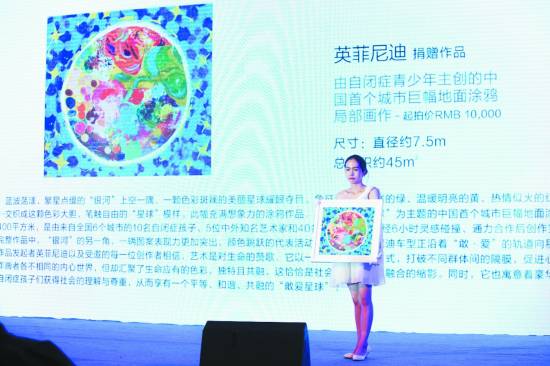 在演唱会前一天,作为唯一汽车合作伙伴、冠名赞助商,英菲尼迪还携手高圣远、周迅夫妇举办慈善拍卖晚宴,为自闭症孩子筹集善款。晚宴现场,陈柏霖、刘畅等明星也为拍卖捐赠了自己的私人物品。一幅由10位自闭症青少年参与创作的涂鸦画作——《敢爱星球》,吸引了现场众多嘉宾的关注,在起拍价为1万元的情况下,最终以12万元高价拍出。英菲尼迪QX50高圣远、周迅夫妇定制版将慈善拍卖晚宴推向了高潮。经过激烈竞拍,该拍品以50万元拍出。最终,此次慈善拍卖晚宴募款超过464万元,加上晚会票款及相关赞助的收益,600余万元善款在去除成本后将全部投入英菲尼迪战略合作伙伴——壹基金“海洋天堂计划”。
