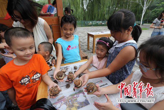7月19日,北京市玉渊潭公园内科普小屋开启暑期模式。周末,您可以带着孩子当一回“自然手工客”,和芒果老师一起动手,利用公园内林木废弃枯落物制作手工艺品,走进“森林大蓬车”,亲身体验森林里白天和黑夜的奇妙,在活动参与中培养孩子们的环保意识,共同感受大自然带来的神奇。本报记者 李建泉摄
