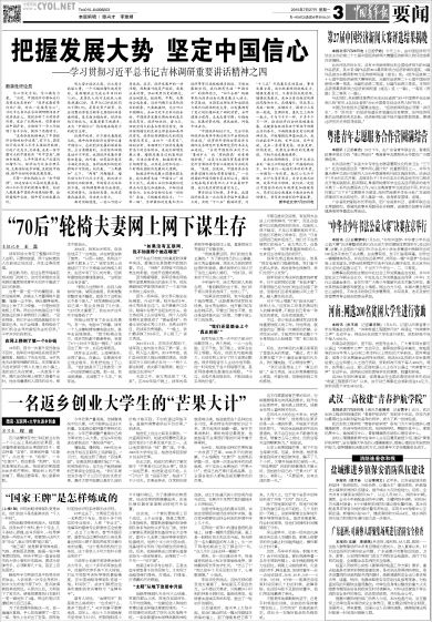 1. 凡本网注明"来源:中青在线或中国青年报"的所有作品,版权均属于中青在线或中国青年报社,未经本网授权,不得转载、摘编或以其它方式使用上述作品。