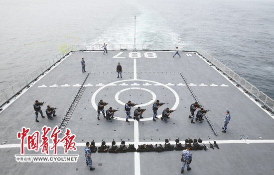 7月中旬,完成护航任务的特战队员随微山湖舰从青岛返回部队。特战分队的护航任务基本结束,但训练却没有停止。早晨起床后,在舰上进行跑步、军体拳、擒拿格斗等体能训练;上午是特种兵战术训练,主要有攀爬、滑降、小组战术演练;下午进行带武器的训练,主要有轻武器射击、蒙眼拆装枪支等;晚上补充进行基本功的练习。