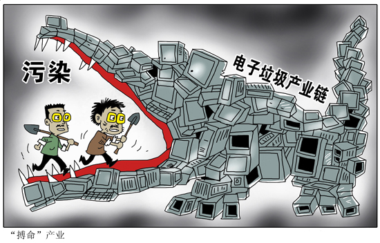 中国民主促进会于今年全国两会前夕提交的《关于推动并规范我国电子垃圾处理的提案》显示,目前我国电子垃圾回收处理行业还处于粗放型的状态。90%以上的电子垃圾都是由个体户回收,并由小作坊处理,已形成一条完整成熟的灰色产业链,年产值达千亿元。而获得环保部技术资质认证的104家企业却因前期建设投入高、处理成本高,面对电子垃圾回收渠道和数量匮乏的困境,导致无法开工生产,处于亏损的尴尬境地。