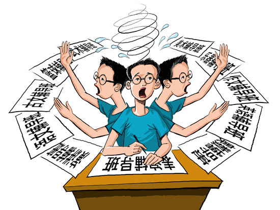 最“疯狂”的要属我的同事——可亲可敬的赵姐了。她竟然给上小学的女儿报了8个辅导班:钢琴班、舞蹈班、作文班……当时我就惊呆了。我问:“孩子比上学还累?能吃得消吗?”赵姐歪歪头,一笑:“那最起码比在家上网看电视好吧!我也想给孩子减负,孩子哪个都舍不得放,都想学。”事后,我问她的女儿累不累,大大出乎我的意外,她竟然说:真心不累。