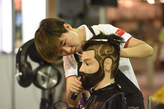 第43届世界技能大赛美发项目金牌获得者在比赛中