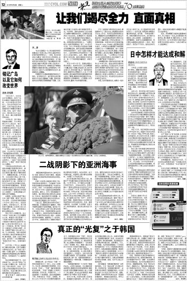 “也许这是最后一次,我们能陪同幸存者重返这个恐怖之地。10年后,能陪伴我们的幸存者将寥寥无几……将来,我们听谁讲述?当最后一批历史见证人即将逝去,后来人独自带着他们的悲伤和疑问:这个国家将发生怎样的变化?”曾任德国《时代周报》副主编的马蒂亚斯·纳斯,在他有关二战胜利70周年的评论《特殊的庄严肃穆笼罩着我们国度》里写道。在纳斯看来,今年的纪念日,相比于以前的整周年纪念日,显得更悲伤,更震撼。