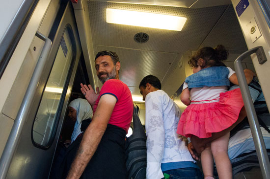 8月31日,在奥地利维也纳西火车站,一名男子登上开往萨尔茨堡的火车后挥手。当日,大批难民登上从匈牙利开往奥地利首都维也纳的火车,但奥地利政府表示不会接纳他们。这批数百名难民大部分来自叙利亚。