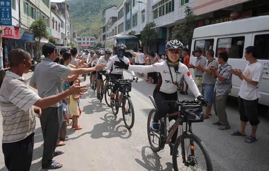 中韩两国队员在骑行过程中,受到沿途中国百姓的欢迎和鼓励。