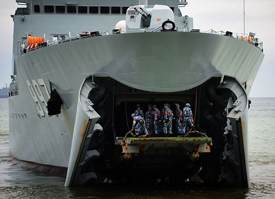 实兵演习中,首次出现了“海上联合登陆”课目,并作为演习的核心课目,其他课目围绕它展开。“海上登陆”是高端、复杂的作战样式,现代战争条件下,实施的难度越来越大。该课目的演练,也意味着中俄两国海军的技战术协作水平达到了一个新的高度。