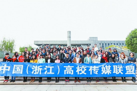 11月29日下午,中国(浙江)高校传媒联盟成立大会在浙江大学紫金港校区举行。据悉,这是继北京、江苏、四川、福建、上海等地成立后的全国第21个区域联盟,其宗旨是为各高校的校园媒体搭建一个交流、共享、提高、互惠的合作平台。图为浙江校媒联盟成立大会与会人员合影。