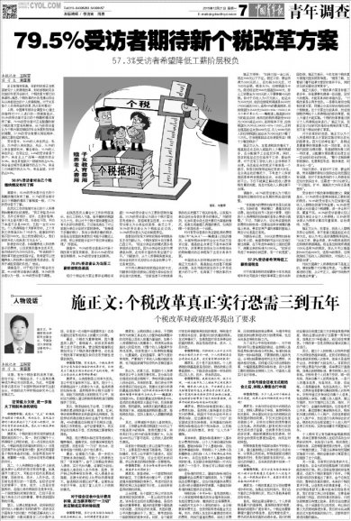 对于改革的时间表,施正文认为个人所得税改革从方案到实施还有比较长的路要走。因为它的牵扯面广,是税法里最重要的难度最大的一项改革,涉及现代国家治理问题,是超越税改意义的一项改革,从酝酿方案到最后法律出台一定会经历较长的时间。“整个过程既要积极推动,也要周密考虑、稳步推进,时间会长一些”。