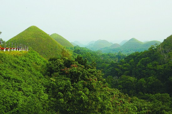 岛的中央地带,群集着1000多座几十米到100多米高的小山包,像倒扣的窝头,顶部浑圆,通体被草木覆盖得严严实实。据说在旱季草木变成褐色,因此得名巧克力山,造就世界上独一无二的奇景。我的目的地就是那1000多座山里的1座,算制高点。