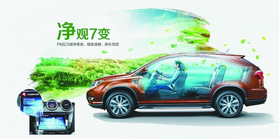 针对雾霾,比亚迪很早就推广绿净系统。S7之所以热卖还因为配备了PM2.5绿净系统,PM2.5绿净系统集监控、过滤和净化功能于一身,可在4分钟内将PM2.5值由每立方米500微克降至50微克以下,轻松扫除雾霾、二手烟、拥堵路段灰尘尾气带来的空气污染,迅速让车内重获清新,十分实用且人性化。可以说,S7是为二胎家庭量身打造的座驾。