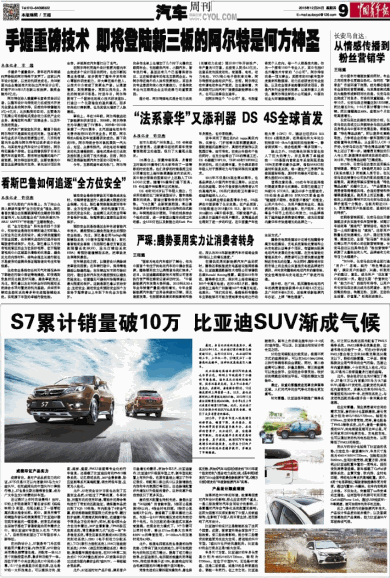 此外,S7还适时对产品升级,满足客户日益增长的需求。例如今年5月,比亚迪宣布,比亚迪S7升级版车型上市,新车型在配置上有所升级,在原有基础上增加了行车记录仪、标配第二排出风口以及新增棕色内饰和车内氛围灯等项目。这些新增配置并未增加S7升级版的售价,这种优惠升级自然吸引了更多买主。