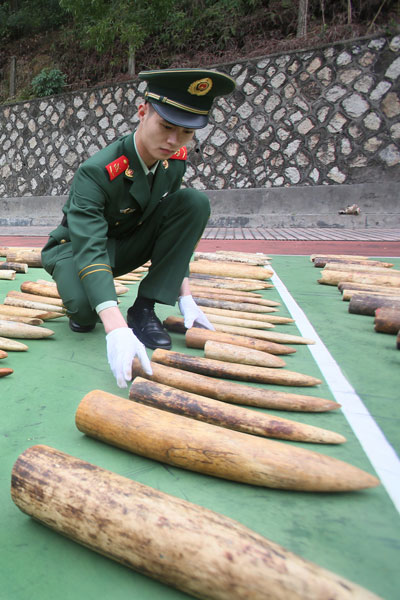 近日,广东珠海市边防支队成功破获一起特大涉嫌走私象牙案。3月4日,珠海边防支队接到线索,称“有人将从香港运输走私物品经由珠海销往内地”。当晚11时,在珠海市淇澳岛北面海域,执勤官兵发现了一艘长约8米的无牌超马力快艇从香港方向海域快速驶向珠海,且该艇吃水很深。根据前期掌握的线索比对,专案组确定该艇存在重大嫌疑,随即亮明身份,靠前要求检查。此时,嫌疑快艇非但不配合,反而加速逃逸。经过一路的追击,嫌疑快艇最终在淇澳岛大澳湾冲滩,紧随其后的执勤官兵快速对现场进行了封锁勘查。经清点,查获象牙共计221块,总重约450千克,黑市价格达1800万元人民币。据办案人员介绍,此次查获象牙均为非洲象牙切块单品,是涉嫌走私人员为了便于藏匿运输所采取的手段,其中最大的单品长度超过53厘米,重达7.5千克。周捷/摄