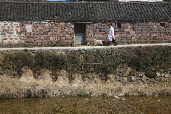 浙江省余姚市大岗镇,村民的狗对镇卫生院的姚亚强大夫很熟悉,姚亚强进村巡诊,小狗就欢快地在前面带路。