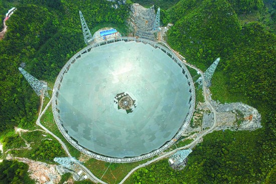4月10日拍摄的正在建设中的500米口径球面射电望远镜(FAST)工程。截至4月10日,正在贵州省平塘县建设的世界最大单口径射电望远镜——500米口径球面射电望远镜(FAST),已完成4185块反射面面板安装,完成比例达94.04%,工程进入收尾阶段。据悉,FAST的反射面总面积约25万平方米,用于汇聚无线电波供馈源接收机接收,反射面安装工程预计将于5月中旬完成。