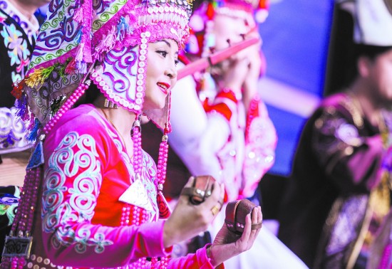 在新疆7坊街文化创意产业集聚区水磨剧场内,一名乐手用乐器“塔斯吐亚克”演奏《牧马之歌》。