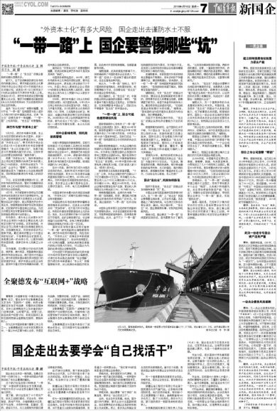中国企业研究院首席研究院李锦分析认为,在“一带一路”上“走出去”的国企要尊重当地法律,以求合作共赢;在此基础上了解当地政局,与当地文化和生态相互适应、融合。杨立强分析,“走出去”时,国企要做两件事:识别风险和规避风险。