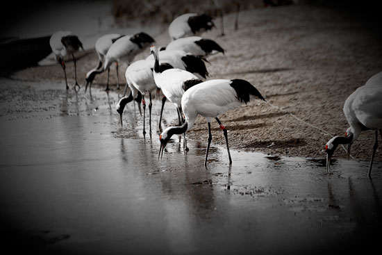 这里的丹顶鹤每天在短暂的放飞时刻能够短暂翱翔,戏水捕鱼,它们嬉戏打闹,摆脱束缚,享受自由,尽管这份自由如此短暂。