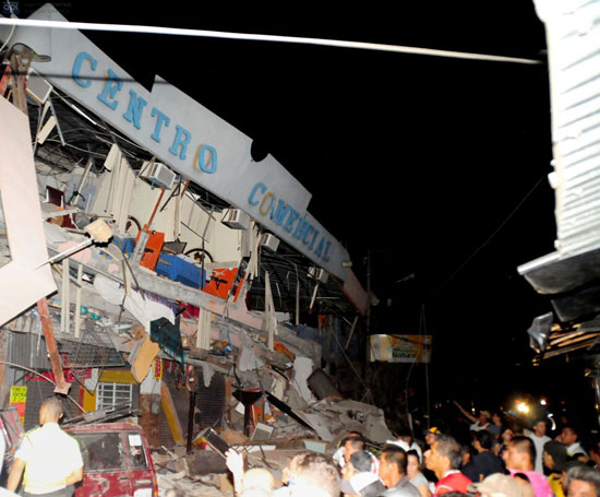 4月17日,在厄瓜多尔的曼塔,救援人员在被地震毁坏的房屋里搜救幸存者。当地时间16日18时58分,厄瓜多尔发生7.8级地震,震中为西北部马纳维省北部沿海地区,震源深度为10公里。地震已致233人死亡,1500余人受伤。新华社/法新