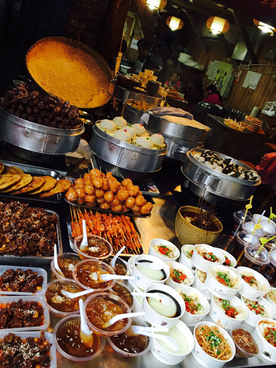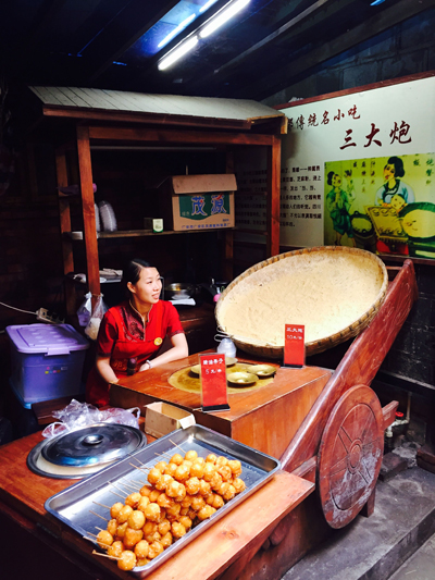锦里小吃街的内容比宽窄巷子要更丰富,价格也更低,我在这里领教了著名的“三大炮”。