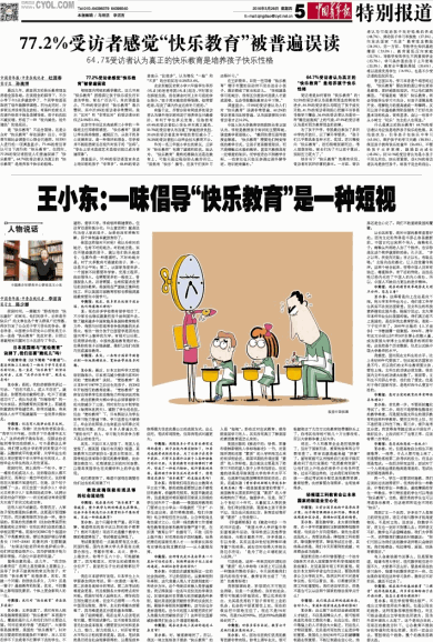 是“快乐教育”不适合国情,还是公众对“快乐教育”存在误读?近日,中国青年报社会调查中心联合问卷网,对2001人进行的一项调查显示,77.4%的受访者认可当下流行的“快乐教育”,但同时,77.2%的受访者担忧人们普遍误读了“快乐教育”。64.7%的受访者认为真正的“快乐教育”是培养孩子快乐的性格。