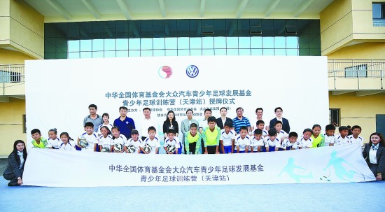 近日,由大众汽车集团(中国)携手中华体育基金会、中国足球协会及天津足球协会共同发起的“大众汽车青少年足球训练营(天津站)”在火车头足球俱乐部的球场上举行授牌、启动仪式。