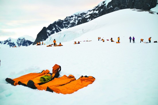 一开始以为露营是搭个帐篷睡在冰天雪地里,到了露营地点才知道,是给个睡袋直接睡在冰上。鼓足勇气决定去挑战,于是和其他同行者一起用铁撬挖坑,再用挖起的冰在坑旁垒成小墙,以防风避寒。当所有工作完成,钻进睡袋躺在雪地上时,突然感知其中的美好,那个季节南极处于极昼,已经没有黑夜,四周是雪山环抱,海豹企鹅就睡在我的身旁,我们真正感到自己融入这迷一般的大自然。