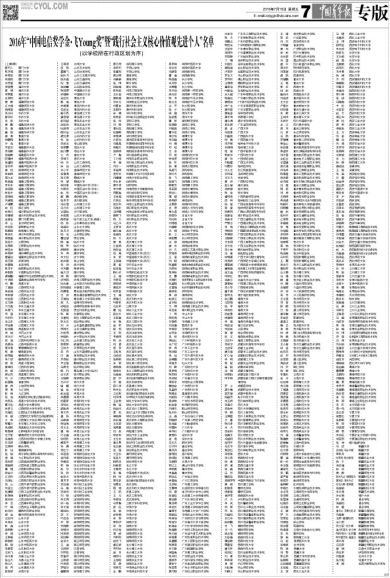 2016年“中国电信奖学金·飞Young奖”暨“践行社会主义核心价值观先进个人”名单