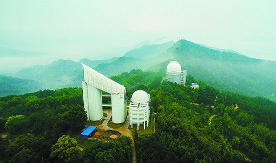 这是郭守敬巡天望远镜(左)(7月15日摄)。