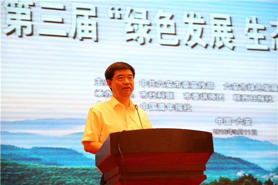 9月11日,第三届“绿色发展 生态六安”论坛在安徽省六安市举行。六安市委书记孙云飞在致辞中表示,六安是大别山革命老区的一部分,在这一块土地上,长期形成了一种红色精神,其核心,就是牺牲和奉献。面对目前加快发展、脱贫致富和生态保护的艰巨任务,六安市坚持弘扬红色精神、致力绿色发展,奋力把老区打造成红色精神的传承高地和绿色发展的崛起高地。