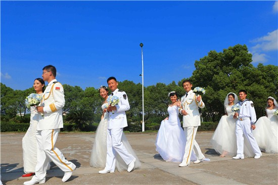 9月24日,东海舰队某驱逐舰支队为因任务推迟婚期的官兵们举办了一场集体婚礼,35对新人喜结伉俪