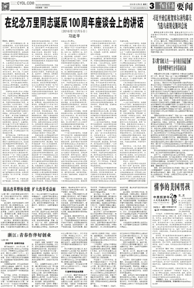 今天,我们怀着崇敬的心情,在这里隆重集会,纪念万里同志诞辰100周年,缅怀他为我国革命、建设、改革事业作出的卓越贡献,追思他的革命精神和崇高风范,激励全党全国各族人民为夺取中国特色社会主义新胜利、实现中华民族伟大复兴的中国梦而努力奋斗。