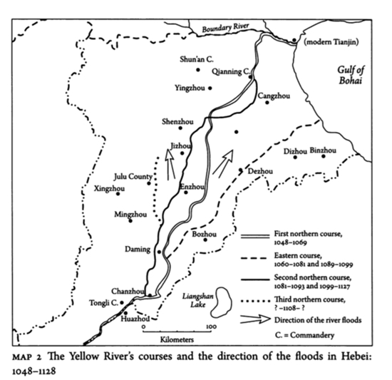 根据张玲的研究,北宋政府甚至会诱导黄河往某个方向改道,因为那里被认为是边缘性地区,对国家政权的核心利益危害要小一些。
