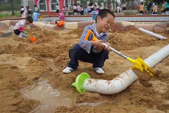 上图为赣榆塔山中心幼儿园的孩子有自己的玩泥巴时间。秦明/摄