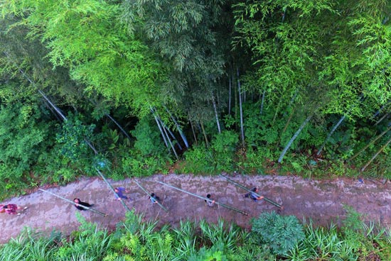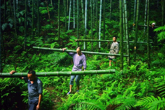村民搬运竹子。