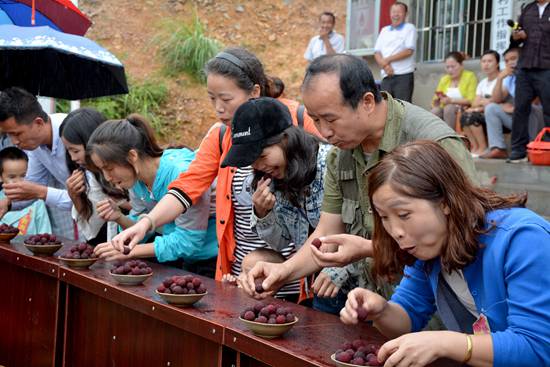 6月3日,游客在杨梅节上参加吃杨梅比赛。当日,贵州省黔东南苗族侗族自治州榕江县高文苗寨举办杨梅节,吸引众多游客参加“杨梅大王”评选、吃杨梅比赛、吹芦笙、跳芦笙舞等趣味活动。刘进银/摄(新华社发)