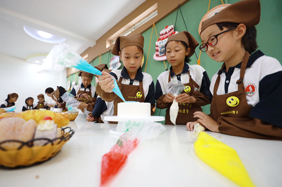 6月26日,内丘县实验小学学生在烘焙课堂制作糕点。近年来,河北省内丘县实验小学探索推进学生素质教育提升,以社团活动为平台,积极开展内容丰富、形式多样的特色教育活动。 新华社记者 朱旭东/摄