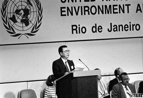 到中央工作后,李鹏同志按照中央要求,兼任国家教育委员会主任、国务院环境保护委员会主任、中央专委会主任、国家科技领导小组组长等,在科技、教育、环保和国防工业等领域倾注了大量心血,是科教兴国战略和可持续发展战略的重要领导者。他强调实现四个现代化,科技是关键、教育是基础。他坚决贯彻“科学技术是第一生产力”思想,大力推进科技体制改革,认真落实知识分子政策,推动颁布实施《国家中长期科学技术发展纲领》,组织实施“863”计划、“973”计划,建立完善专利制度和技术市场,支持成立中国工程院和开展南极科考工作,充分调动广大科技工作者的积极性和创造性,推动一批基础研究、前沿研究重大科技成果涌现,国家整体科技实力进一步增强。他提出要加强党和政府对教育工作的领导,坚持贯彻优先发展教育战略,积极推进教育体制改革,推动制定和实施义务教育法,改革和发展职业技术教育和成人教育,扩大高校管理权限,推动实施高等教育“211工程”、“985工程”,加强高校思想政治工作,改进派遣留学生工作,为改革开放各条战线输送了大批人才。他是载人航天工程的重要决策者,领导开展工程前期调研和技术、经济可行性论证,推动载人航天工程实施。他强调要注意正确处理经济建设和环境保护的关系,强化环境管理,推动出台《中国二十一世纪议程》,领导实施“三河三湖两控区一海一市”工程,在实践中完善环境保护基本国策和“三同步”、“三统一”战略方针,为初步走出一条具有中国特色的环境保护道路作出重要贡献。