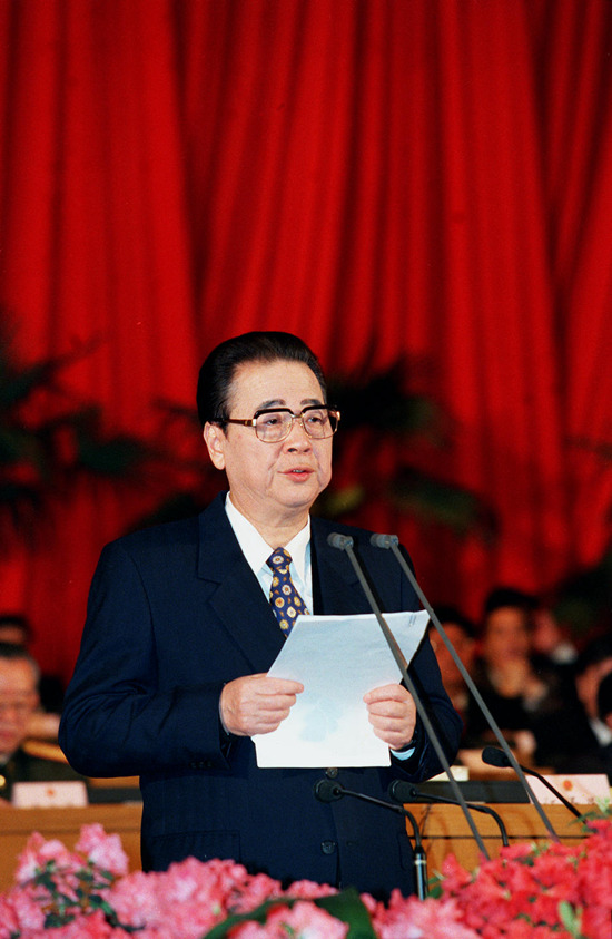 1992年10月,李鹏同志在中共十四届一中全会上再次当选为中央政治局委员、常委。1993年3月,在八届全国人大一次会议上,他再次被任命为国务院总理。邓小平同志发表南方谈话后,他积极支持、宣传和贯彻邓小平同志改革开放的思想主张,坚决贯彻党的十四大精神,加快社会主义市场经济体制改革步伐,扩大对外开放,加强和改善宏观调控,在党中央领导下主持制定国民经济和社会发展“九五”计划和2010年远景目标,布局建设一批国家重大项目,推动国民经济持续快速健康发展。