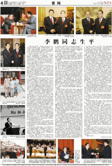 1989年6月中共十三届四中全会后,作为以江泽民同志为核心的中央领导集体的重要成员,李鹏同志高举邓小平理论和“三个代表”重要思想伟大旗帜,深入贯彻党的十一届三中全会以来的路线方针政策,以经济建设为中心,坚持四项基本原则,坚持改革开放,解放思想、实事求是、与时俱进,为党和国家事业发展殚精竭虑,贡献了自己的智慧和心血。