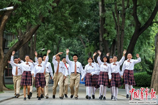9月4日,北京市通州区,学生漫步在潞河中学校园,向着摄影爱好者的镜头挥手致意。潞河中学创立于1867年,是北京市为数不多的保持原址原貌的学校,通州第一个中共党支部在这里诞生。当天,数百位京城摄影爱好者聚焦北京城市副中心“元年”,为通州留下“定妆照”。中国青年报·中国青年网记者 李建泉/摄