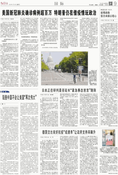 美国新冠肺炎确诊病例超百万 特朗普仍在借疫情玩政治
