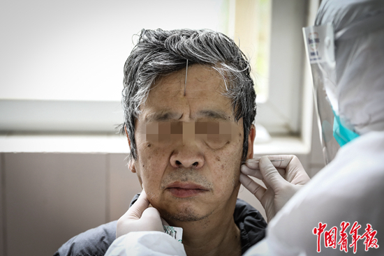 杨超会用中药汤剂和耳穴压豆来治疗焦虑和失眠,在他看来,中医在这方面有很大优势。西医虽然也可以治疗,但据病人的反馈,很多西药容易造成依赖,一旦停药就可能反弹。相比之下,中医更注重对患者进行整体功能调整,治愈后不易复发。这样的方法,也被之前驰援他们的重庆医科大学附属第一医院医疗队和广东佛山中医院医疗队用在新冠病房的患者治疗当中。